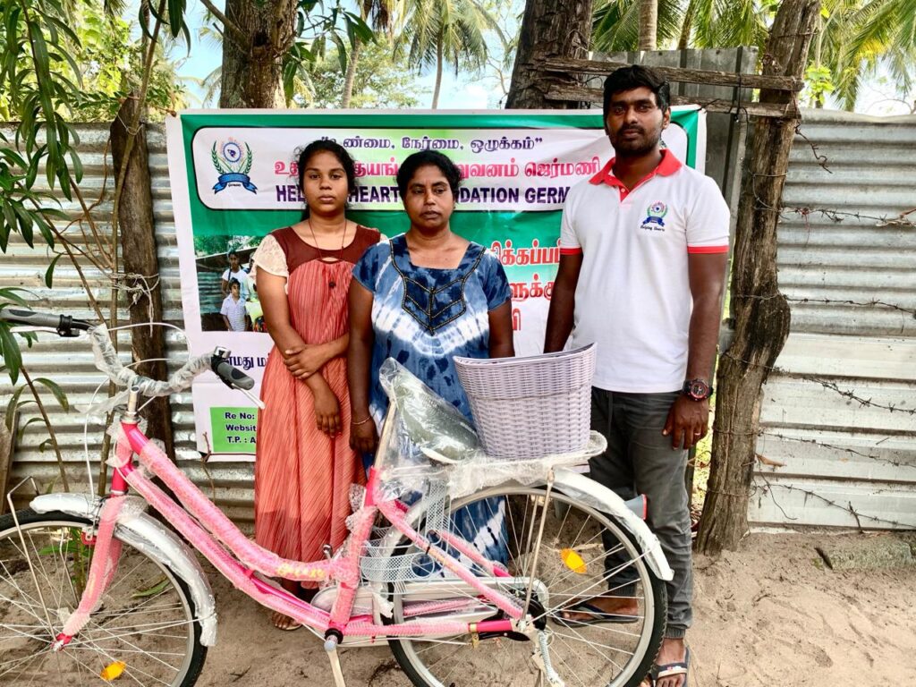 2008ல் கணவர் STFல் அழைத்துச் செல்லப்பட்டு காணாமலாக்கப்பட்டார். தற்சமயம் தனது 3 பிள்ளைகளுடன் கூலி வேலை செய்து வாழ்ந்து வரும் குடும்பத்திற்கு (மாணவிக்கு) துவிச்சக்கரவண்டி ஒன்று வளங்கி வைக்கப்பட்டது அந்த வகையில் செல்வன் சுகந்தன் வித்தியாதரன் அவர்களுக்கு மனம் நிறைந்த பிறந்த நாள் வாழ்த்துக்களைத் தெரிவித்துக் கொள்வதுடன் அவர்கள் நலமோடு வாழ இறைவனை வேண்டிக் கொள்கிறோம்.